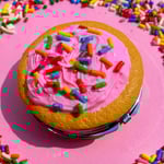 handcrafted with polymer clay with SPARKLY pink frosting and rainbow sprinkles!
